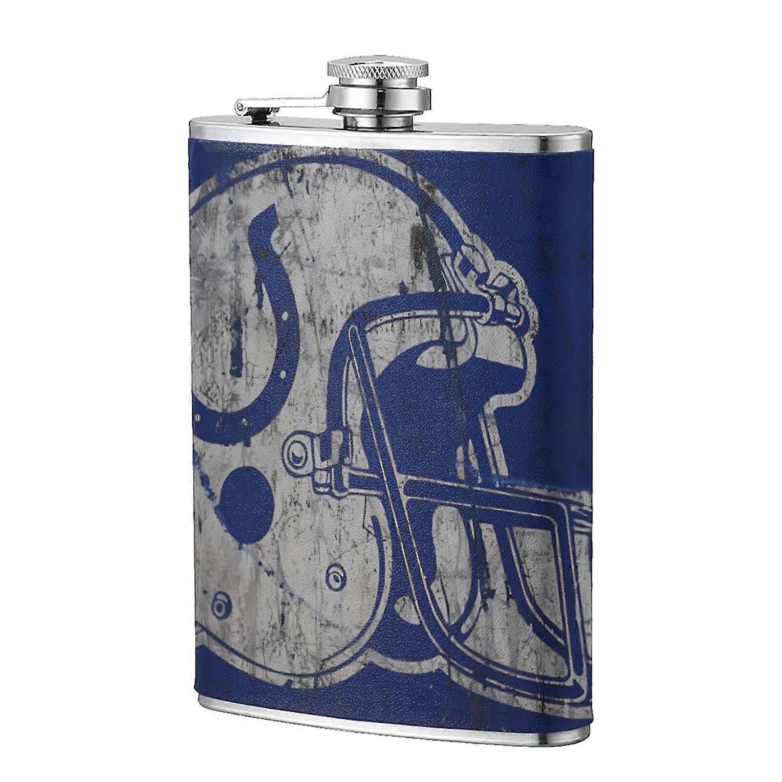 Colts Flagon Hip Flask 8oz, Food-Grade Stainless Steel & Leather, Compatible with Outdoor Sports, Camping, Wedding Groomsman Gift