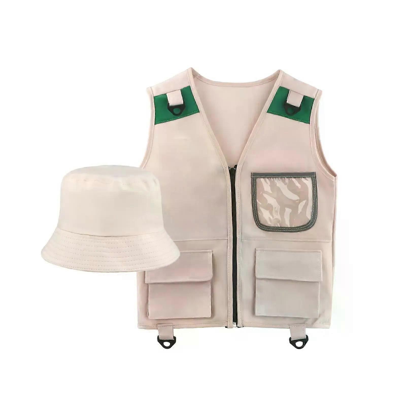 Outdoor Adventure Kits Washable Cargo Vest Children Toys Explorer Kits for Halloween Birthday Gift Children Boys Girls Camping Description: Package:Our outdoor learning toy set includes hat and vest. Vest: Kids outdoor adventure explorer costumes made of polyester material.the pockets are designed for storing and carrying all essential items. Creativity and Learning:Kids Explorer Vest and Hat Costume encourage scientific exploration and love of nature, allowing children to observe up, stimulate their understanding of the natural world. Educational:Kids Outdoor Exploration hat and vest is nice for indoor pretend play and outdoor adventures. Let your child's imagination. Wide application:Put on your vest and bring your expedition equipment. Great for outdoor, Fishing, role play, Hiking, and Camping. Specification: Material:Polyester Size Chart: 37cmx49cm/14.57inchx19.29inch Package Includes: 1x Cargo Vest 1 Hat Note: Please allow 1-3cm measuring deviation due to manual measurement. Due to the different monitor and light effect,the actual color of the item might be slightly different from the color showed on the pictures.Thank you! _x000D_
