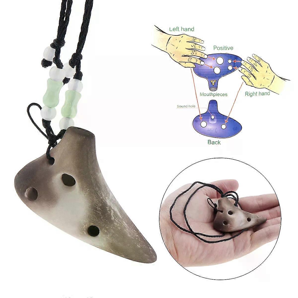Mini 6 Holes Flute Soprano Tone C Necklace Ocarina Clay Smoked Surface Flute Musical Instrument with Hang Rope