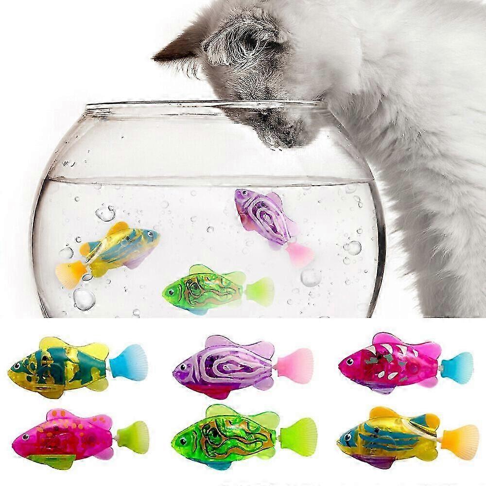 Features: new and high quality.Cat interactive toy, electric fish, with led light.The fish is well designed, look like real fish.Cute shape, can swim in water, very attractive.Built-in led light, twinkle like star at night.With sensor at side, tail can swing after get water detection.Specifications:Material: PlasticColor: 8kindsSize: 9*3.5cmBattery: Button Battery, includedNote:Please ensure the nails are screwed well before you put it in water.Please don't pull the tail when the fish is swimming, it will break the copper wire at tail.Please dry the fish after use, need to take the batteries out for dry.Please check the battery positive and negative side, check the waterproof pad, when you change the batteris.There could be some slight differences in the color tone of the pictures and the actual item.Please allow 1-2mm differs due to manual measurement, thanks.Package Included:1pc x Electric FishNo Retail Box. Packed Safely in Bubble Bag.