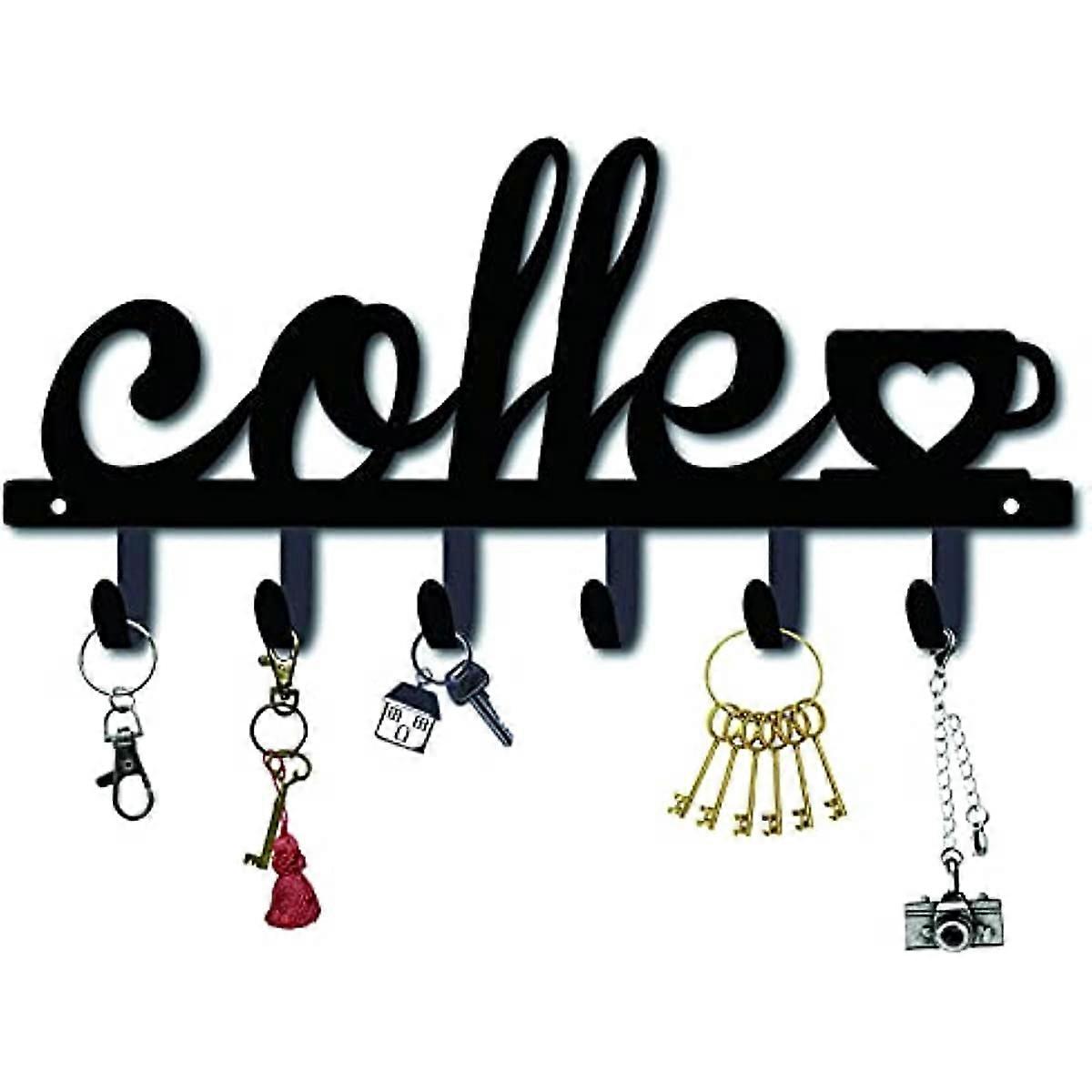 Includes 1 hook hanger & 2 mounting screws & 2 hollow wall anchors. Hanger size:27x13cm/10.6"x5.1". Screw lenth:2.4cm/0.9". Anchor lenth:2.6cm/4". You can easily mount the wall key holder with the screws and anchors. [PACKAGE AND SIZE]: Includes 1 hook hanger & 2 mounting screws & 2 hollow wall anchors. Hanger size:27x13cm/10.6"x5.1". Screw lenth:2.4cm/0.9". Anchor lenth:2.6cm/4". You can easily mount the wall key holder with the screws and anchors. [RELIABLE MATERIAL]: The hook hanger is made of sturdy iron, slim enough for most key chains, ensures stability and strength and the surface is sprayed with black paint to prevent corrosion.Maximum load weight: 5 kg/11 lb [EASY TO INSTALL]: The installation can be completed in just a few simple steps: 1. Make a mark; 2. Drill holes; 3. Insert the anchor; 4. Tighten the screw. [STYLISH DESIGN]: A modern stylish word of "coffee" design which can be mounted anywhere to help you and your family be more organized, adding a touch of morden style to your home. [WIDE APPLICATION]: Wall mounted coat racks take advantage of the unused wall space through out your home making your bedroom, livingroom, kitchen, hallways, garage seem less cluttered. With 6 hooks, can holds hats, coats, jackets, scarves, towels, handbags, umbrellas, purse, keys or other basically.