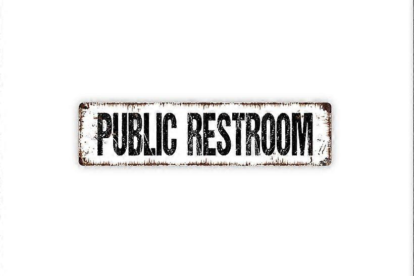 Public Restroom Sign Bathroom Restroom Rustic Metal Street Sign or Door Name Plate Plaque Size: 4 x 16 Inch