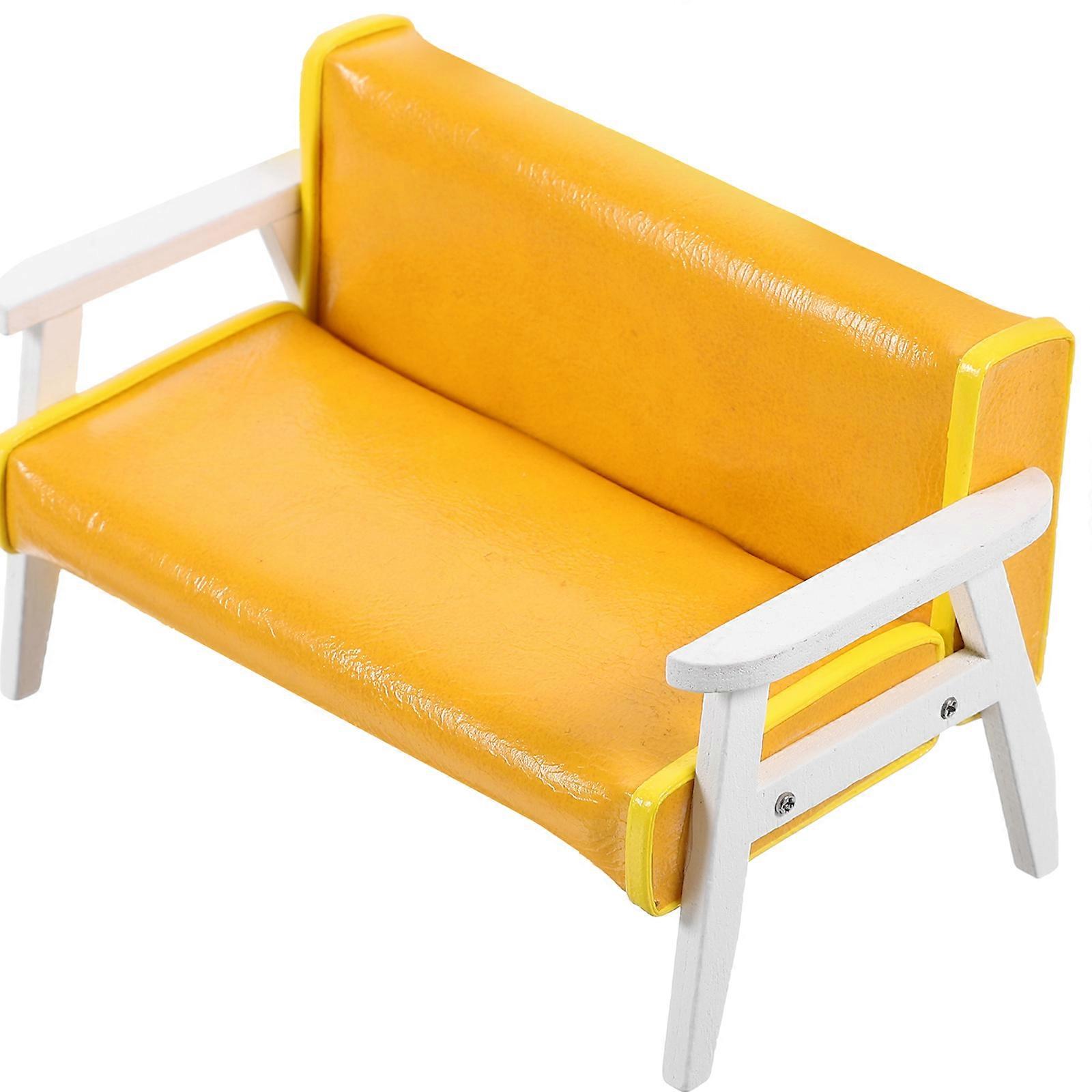 Doll House Miniature Sofa Chair 5Pcs Yellow Wooden Armchair Perfect For Miniature Life Scene Decor