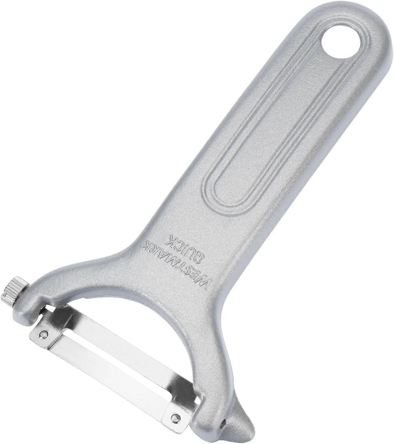 Vegetable/Asparagus Swivel Peeler, Made in Germany Lightweight but sturdy; aluminum and stainless steel; curved blade provides extra wide cut Peel asparagus and other vegetables at great speed with the "quick" asparagus/vegetable peeler. The curved blade gives a wide cut and the aluminum body is lightweight yet sturdy. Dishwasher safe Backed by the Guarantee