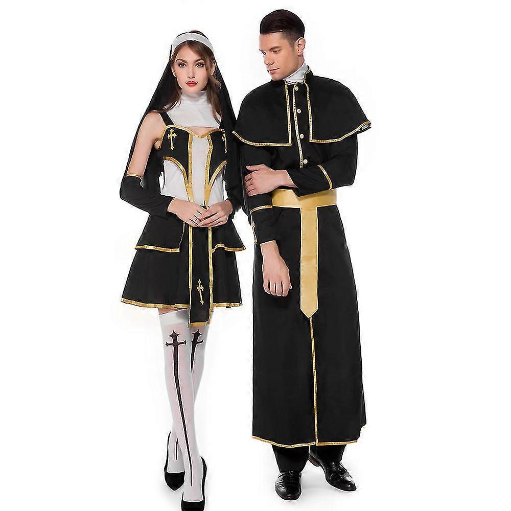 Costumes Cospaly Halloween Costume Couple Jesus Christ Men's Missionary Clerical Dress Maria Priest Nun Costume 26s