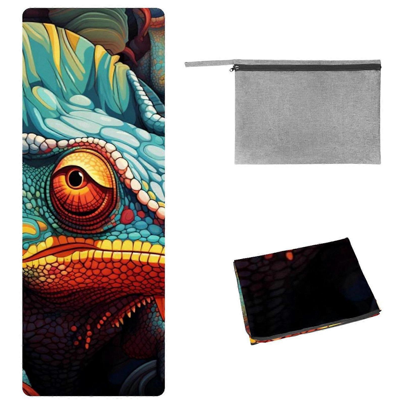 Chameleon Yoga Mat Towel, Storage Bag, 72.8"x26.8" - Suitable for Yoga, Pilates, Fitness, Gym - Yoga Blankets and Gym Towel Included