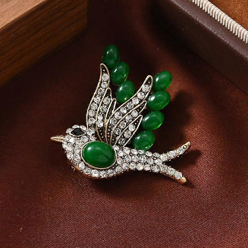 Emerald Flying Swallow Brooches For Women Men Retro Color Metal Bird Lapel Buckle Pins Simple Animal Badge Jewelry Accessories