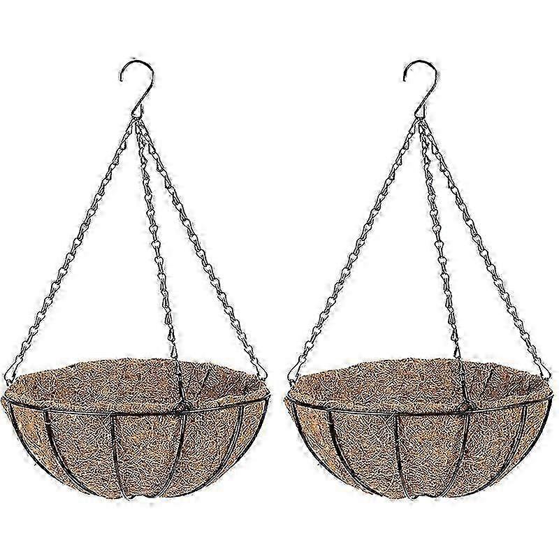 Metal Hanging Basket with Coir Liner: Round Wire Plant Hanger Basket Chain & Porch Decor Flower Plant Holder