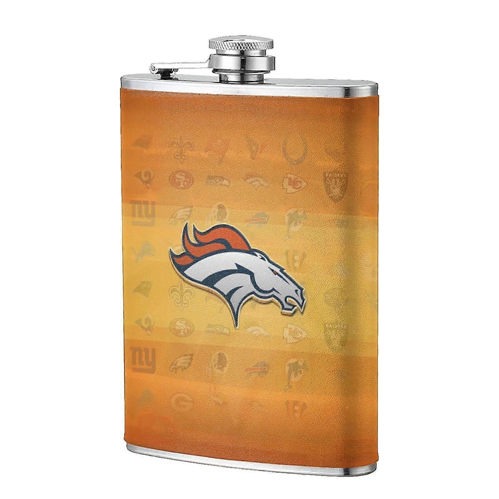 Broncos Flagon Hip Flask for Men, 8oz Food-grade Stainless Steel Leather Pocket Flask, compatible with outdoor sports camping