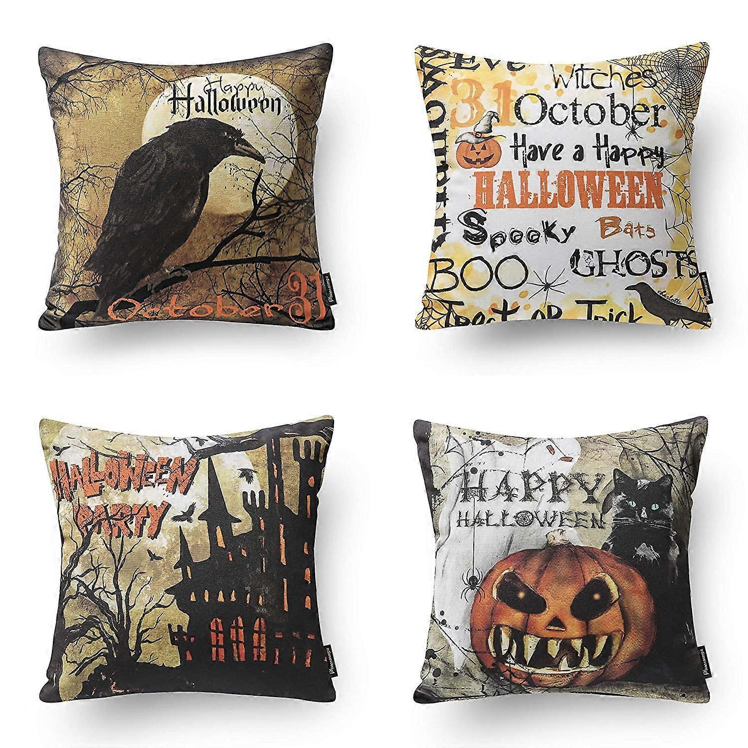 Phantoscope 18" x 18" Crow Halloween Polyester Decorative Pillow Cover , ( 4 Count)