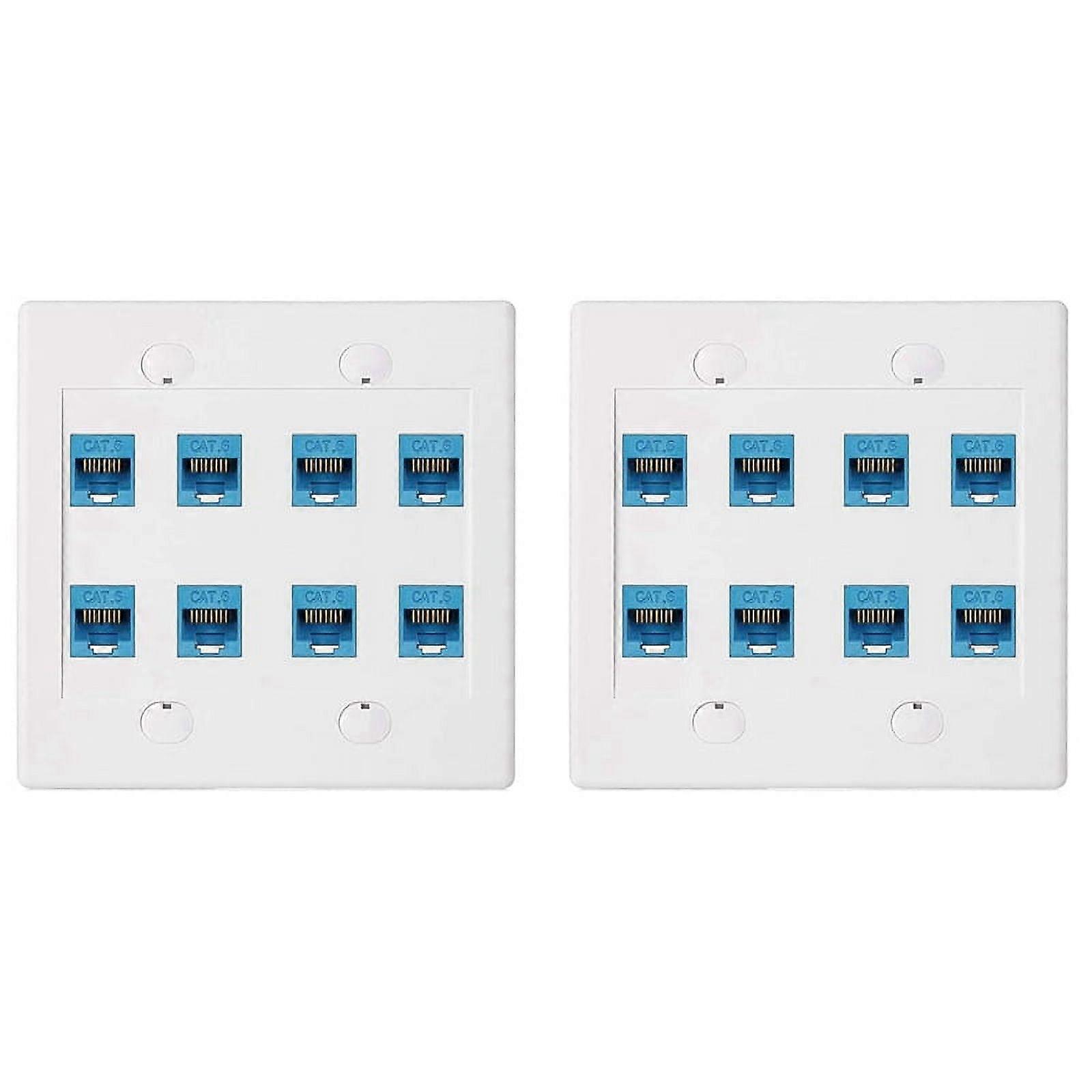 2X Ethernet Wall Plate 8 Port - Double Gang Cat6 RJ45 Network Cable Faceplate Female to Female - Blue