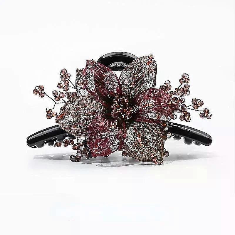 Elegant Copper Wire Flower Bride Hairpin Hair Accessories for Women Luxury Zircon Shark Clip Headwear Hair Clip For Mom Tiaras