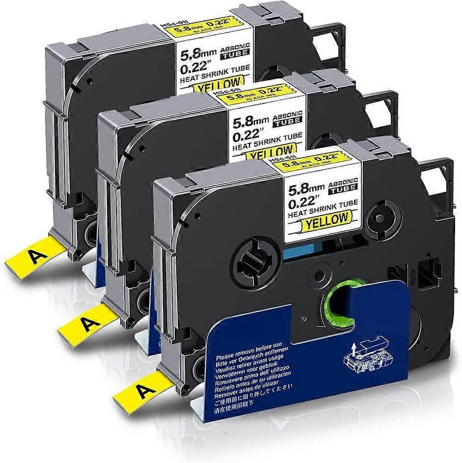 3-Pack Compatible Label Tape Replacement for Heat Shrink Tube HSe-611 HS611 HSe611 Hse-611 5.8mm 0.23" Black