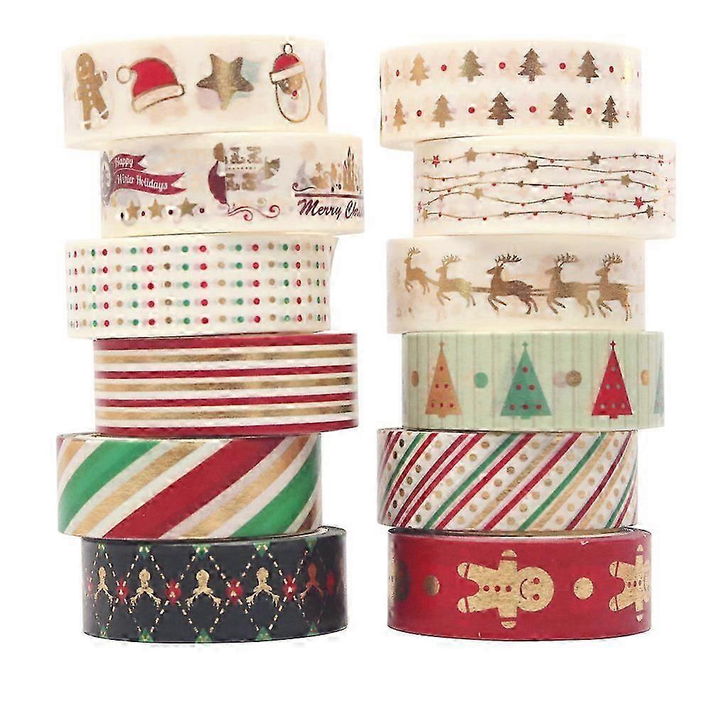 Christmas Paper Tape Set 12 Rolls Tape Set Colorful Decoration, Christmas Holiday Design Art Craft Tape DIY Scrapbook Planning Gift Wrapping Tape Wedd
