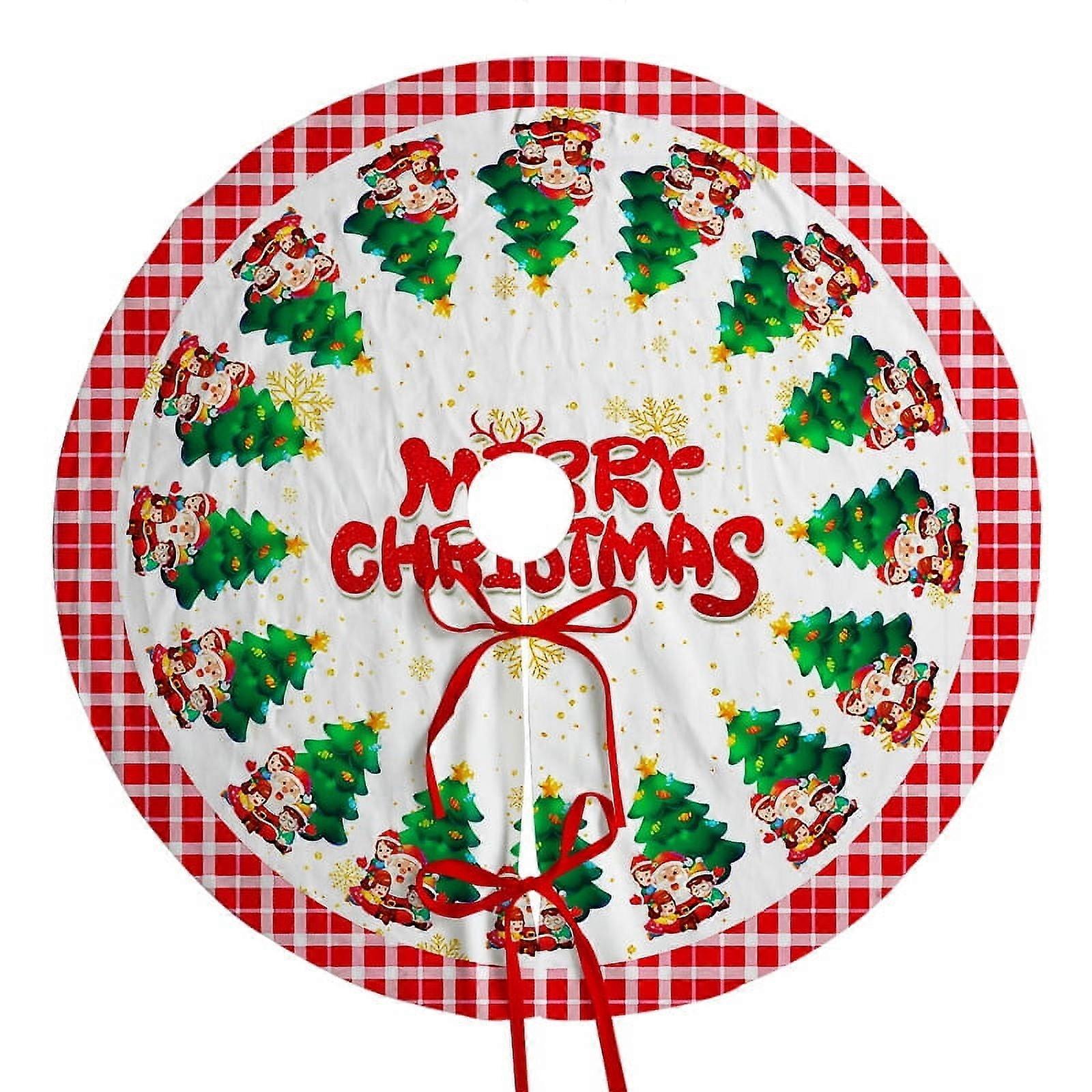 【Soft Material】The Christmas tree skirt is made of soft polyester, which is comfortable to touch and light in weight. Easy to store and use for many seasons to come. 【Perfect Christmas Touch】Our Christmas tree skirts are origional designed and vibrant printed. With a range of unique designs and colors, it will be a perfect christmas touch for any christmas decor theme. It will cover the stand of your christmas tree and any unsightly wires, to give your festive home an uncluttered look. 【Perfect Size】The Christmas tree skirt measures 48 inches/120 cm in diameter. This generous size not only conceals the tree stand but also enhances the overall appeal of your Christmas tree, making it look fuller and more attractive. 【Wide Application】Ideal for both indoor and outdoor Christmas decorations. Place it anywhere you desire - living room, bedroom, garden, bar, hotel, home, school, store, office, supermarket - creating a favorite tree skirt loved by both pets and kids during the winter Christmas season. Experience the joy of family togetherness. 【Easy to Clean】The Christmas tree skirt is easy to clean, you can wipe it with damp cloth or hand wash it, and then hang it to dry, which will save you a lot of time and effort. Christmas Tree Skirt: Our Christmas tree skirt is made of burlap with Christmas-related patterns, high quality, not easy to wear, add color to your Christmas atmosphere. Double-layer Design: Two layers of Christmas tree skirt (cotton and polyester), bright and colorful. Well-made, thick and durable, wrinkle-free, edge trimmed with black cloth, not easy to loosen, easy to put away and store. Anti-UV, anti-fading, can be used for many seasons. Easy to Use: Just put the Christmas tree skirt at the bottom of the tree and close it on the back with 2 Velcro closures, quick and easy to decorate, no ties required. Christmas Decoration: You can put the Christmas tree skirt anywhere you like, such as living room, bedroom, courtyard, bar, hotel, store, supermarket or other places. Multiple Style Selection: We have 14 style options, each style has 3 sizes, you can choose according to your needs.