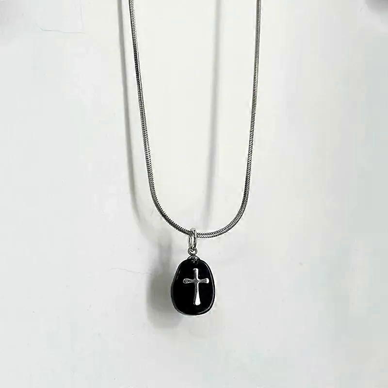 Punk Accessories Snake Bone Chains Natural Stone Pendant Necklace Cross Necklace for Women Grunge Jewelry Gothic Fashion