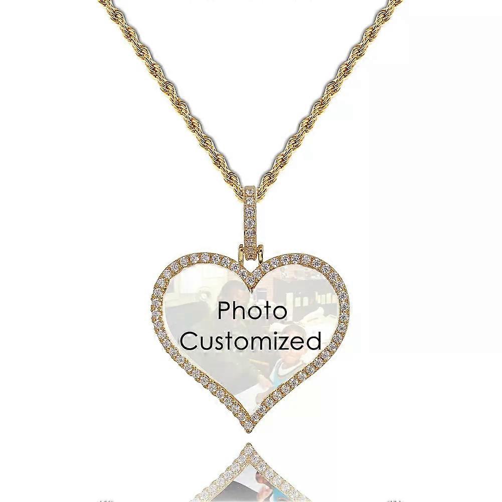 Custom Photo Heart Shape Pendant Necklace Shiny Bling Iced Out Cubic Zirconia Stainless Steel Chain Jewelry Memory Gifts