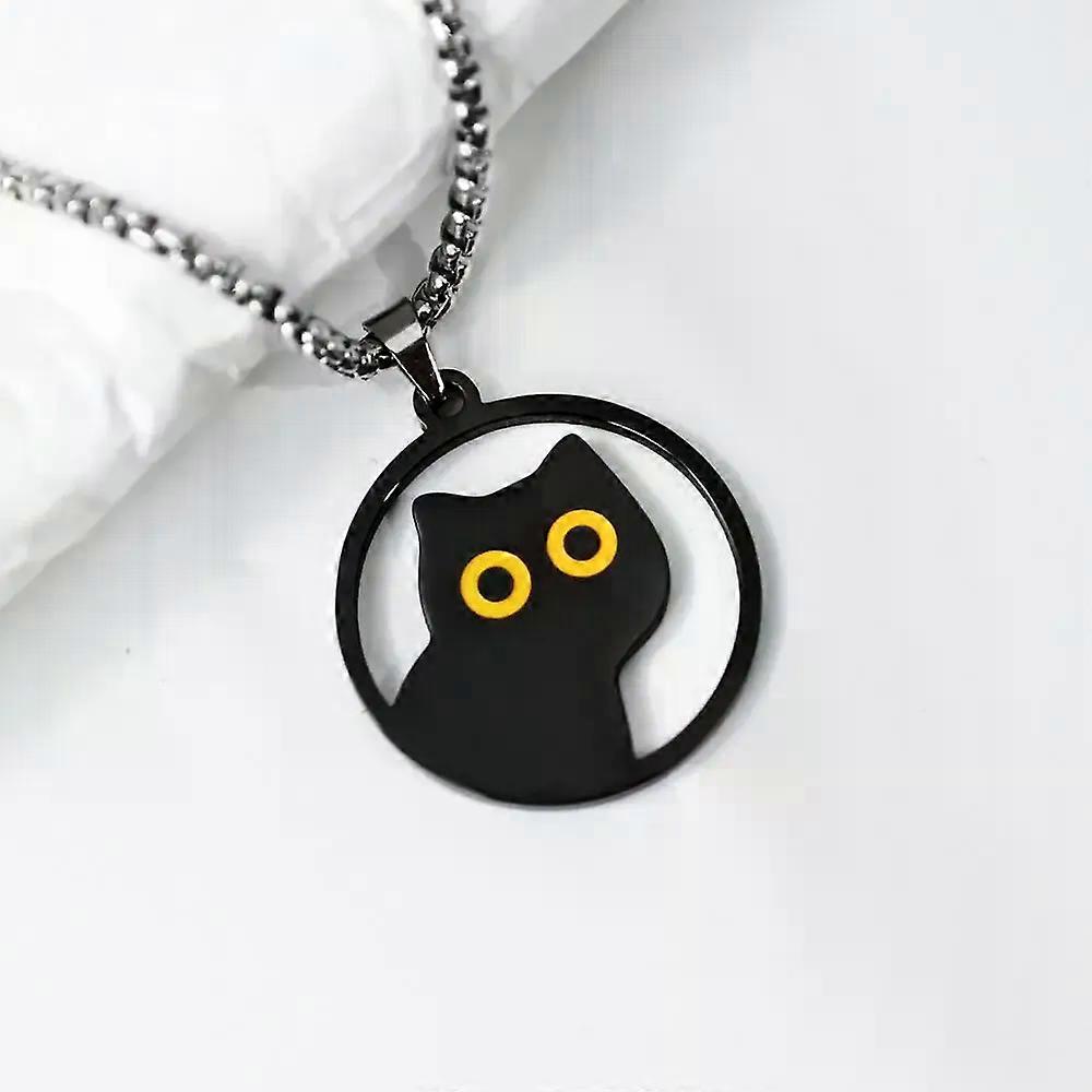 2024 Titanium Steel Black Cat Necklace For Women Men Trend Black Round Cat Pendant Sweater Chain Couple Jewelry Neck Accessories