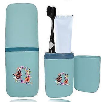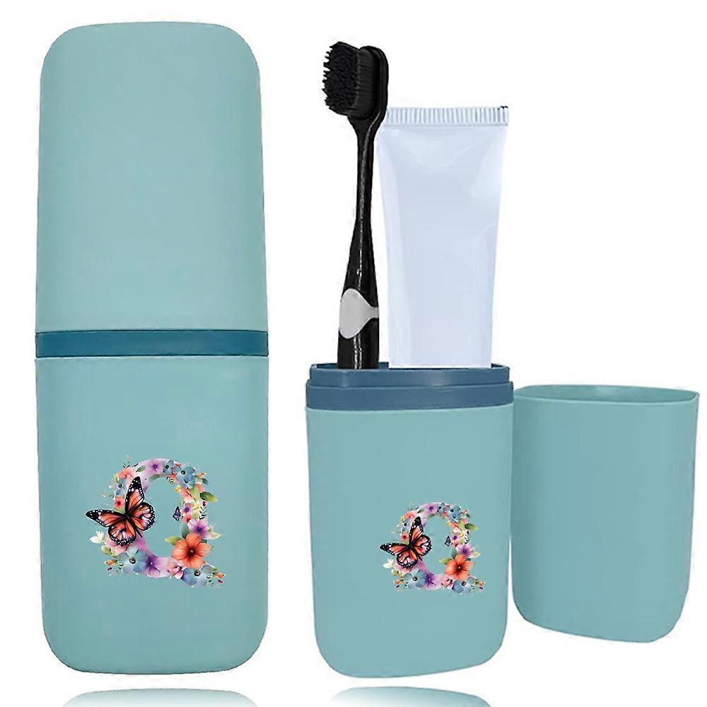 Portable Travel Toothbrush Box Detachable Organizer Case Mouthwash Cup Travel Toothbrush Storage Box Butterfly Letter Pattern