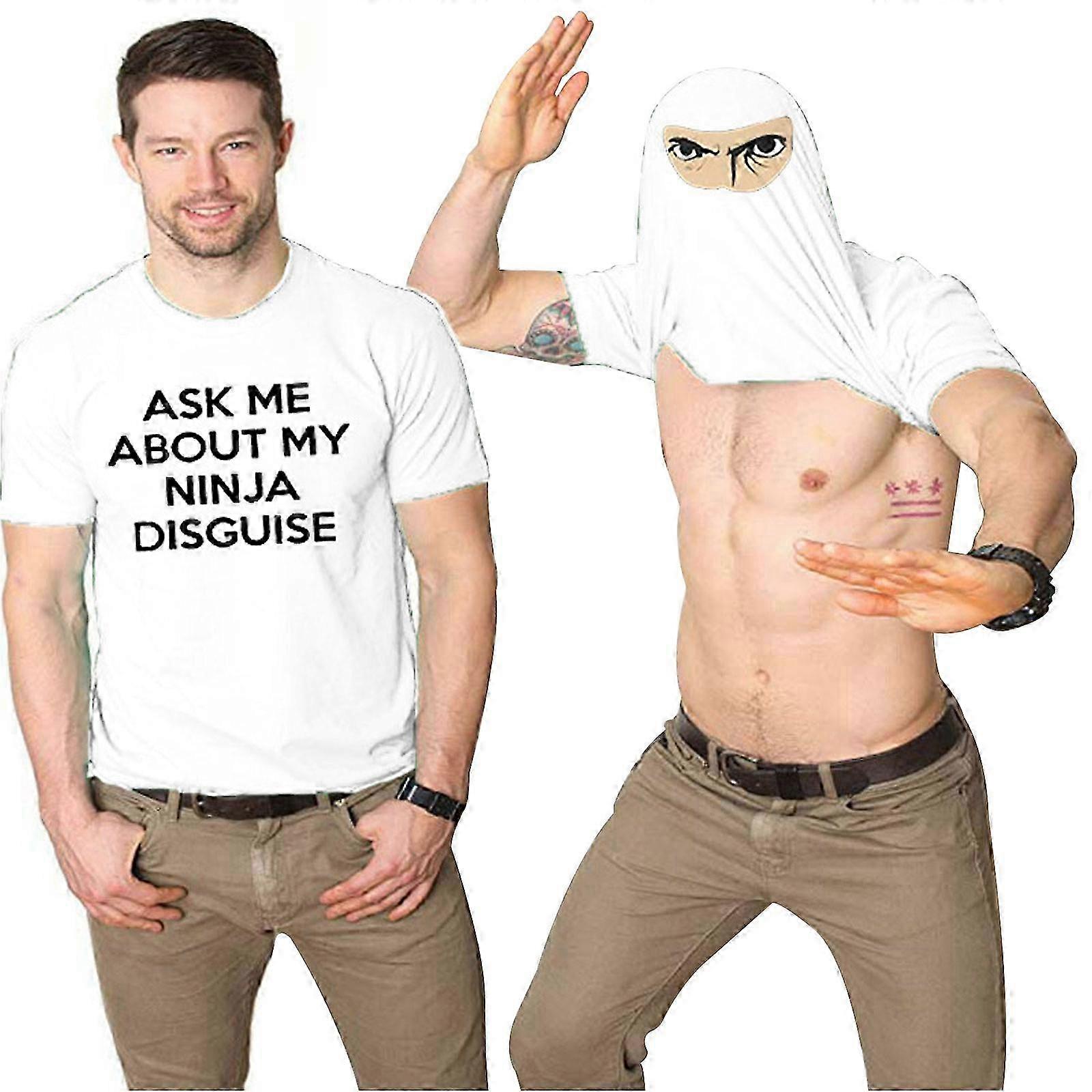 Men's Funny Costume T-Shirt with Ninja Disguise Flip Graphic Humor - Ask Me About My Design