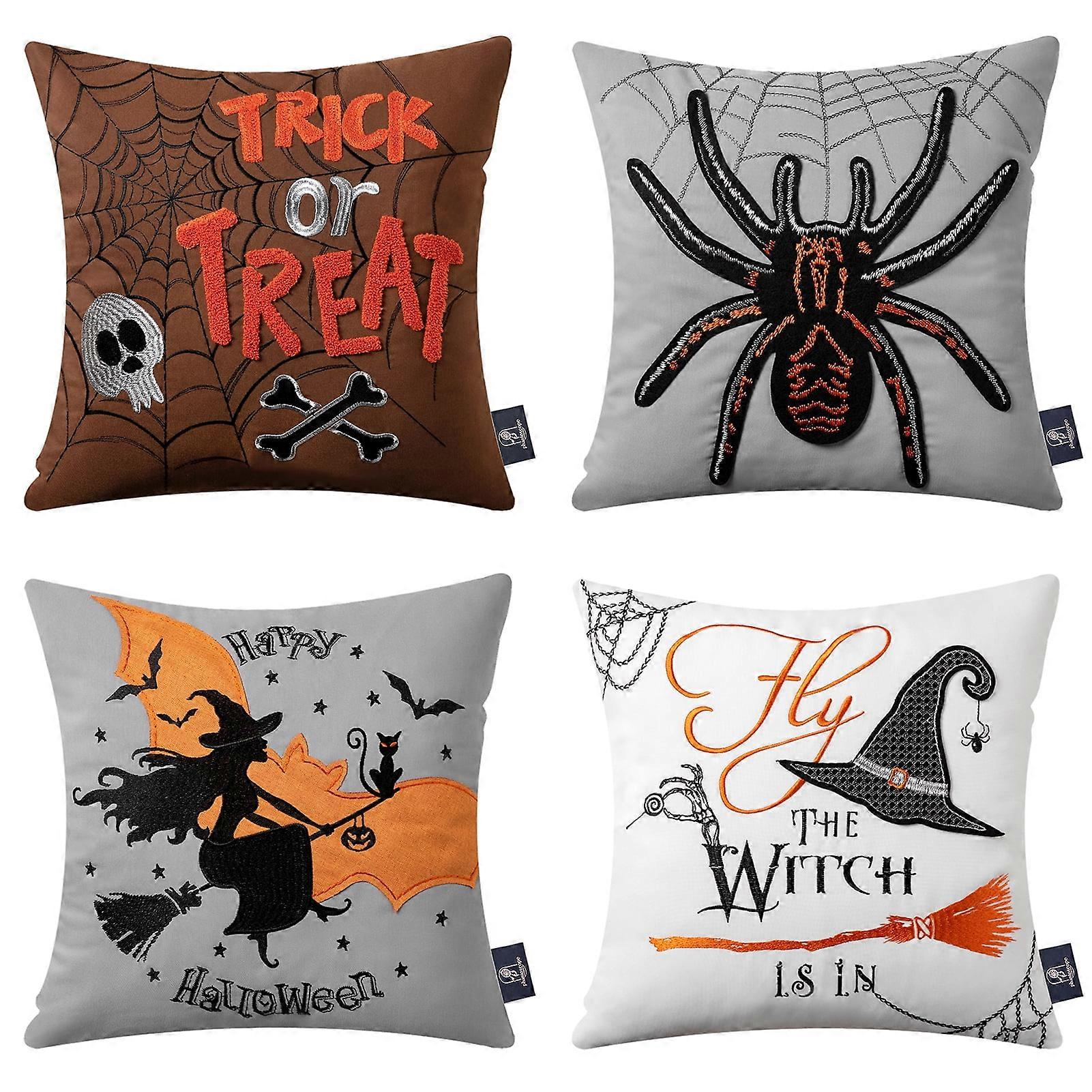 Phantoscope 18”x18” Orange Embroidery Polyester Decorative Pillow Covers, Strong Zipper (4 Count)