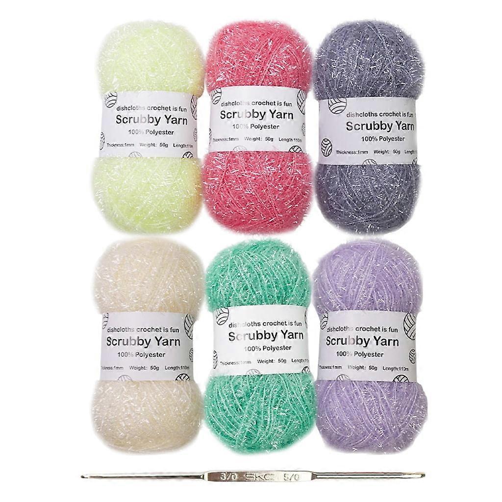 BQBQERT Handmade Scrubby Yarn Crochet Yarn Sparkles Dish Scrubby Yarn with Knitting Hook