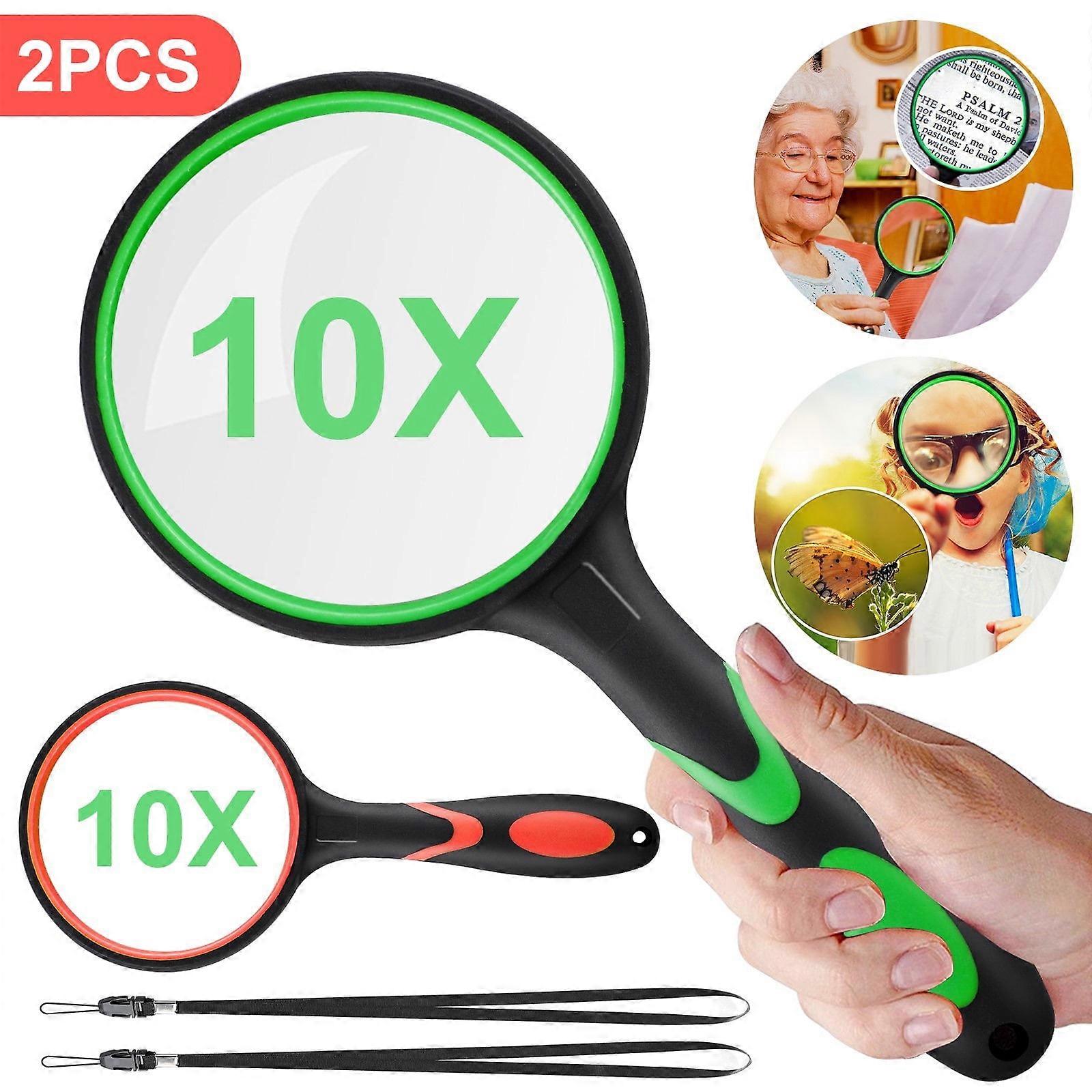 2Pcs 10X Handheld Magnifier 75mm with Non-Slip Handle for Reading, Book, Newspaper, Insect Observation, Science Activities