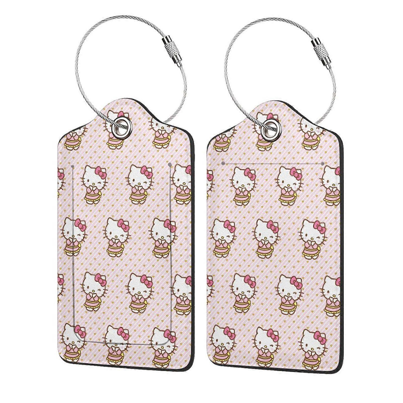 Hello Kitty 2Pc Stainless Steel Leather Luggage Tags, Waterproof ID Holder, 2.9" * 4.6", Compatible with Travel Bags