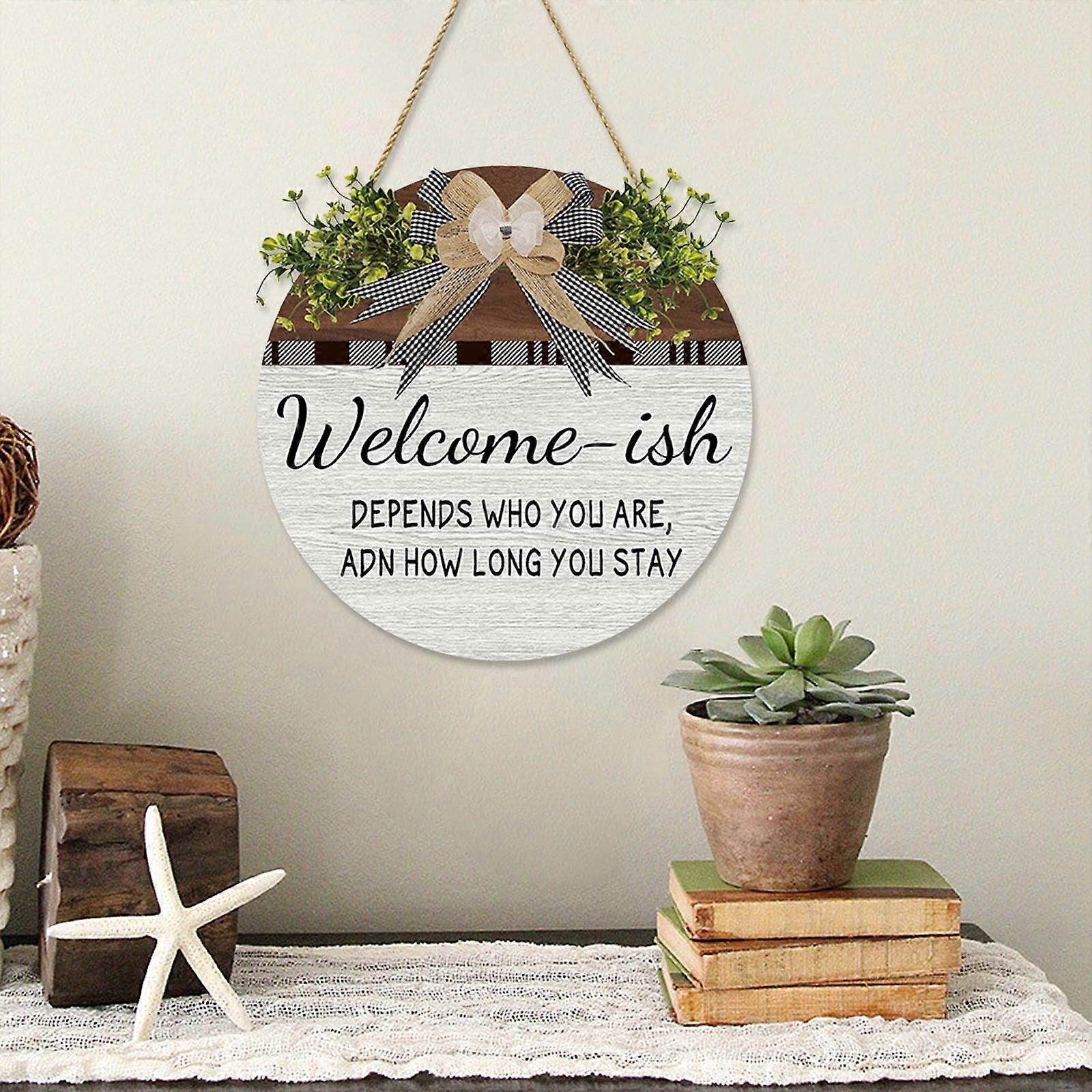 3D Welcome Hanger Funny Welcome Sign Home Outdoor Decor 11.8Inch, Door Hanger Welcome Sign Home Decor Funny Words Door Hanger Feature: Quantity: 1Pcs Material: Density board Color: Black,White,Brown, Khaki Product size: 30x30x0.5cm/11.81x11.81x0.19in Packing size: 35x35x0.7cm/13.56x13.56x0.3in Net weight:280g/0.62lb Gross weight:280g/0.62lb Descrition: Quality : Pair it with a plaid bow and secure it to the welcome sign wreath. Don't worry about falling off! It can not welcome your guests and family, but also decorate your house. Exquisite Craftsmanship : This welcome sign on the front porch is a friendly and welcoming way to make your house more of an approachable home. Our round bathroom sign is perfect for decorating your home. Your sign can be hung up when it arrives. Perfect * For housewarming gifts that you can give to your as a clever gift idea for people of all ages. Suitable for any home : of bows makes our Welcome porch sign the perfect way to liven up your home. Perfect for hanging on front porch doors, back doors, living rooms, bedrooms, entrances, fireplace walls or against shelves or anywhere else in the home, and can even be used in cafes and restaurants, offices and businesses to decorate a home and greet guests. Unique Gift : The welcome sign is a unique gift to complement other modern rustic themed decorations. This is an excellent housewarming gift for new homeowners, , or young families, churches or child care centers. Perfect for Christmas, Thanksgiving and baby showers! warm, let you and your together feel the. 【Product : With our text, your welcome sign will become the sign everyone is talking about! With our 30cm x 30cm round welcome sign, we will make your life better. The Package Include: 1xDoor Quantity: 1Pcs Material: Density board Color: Black,White,Brown, Khaki Product size: 30x30x0.5cm/11.81x11.81x0.19in Packing size: 35x35x0.7cm/13.56x13.56x0.3in