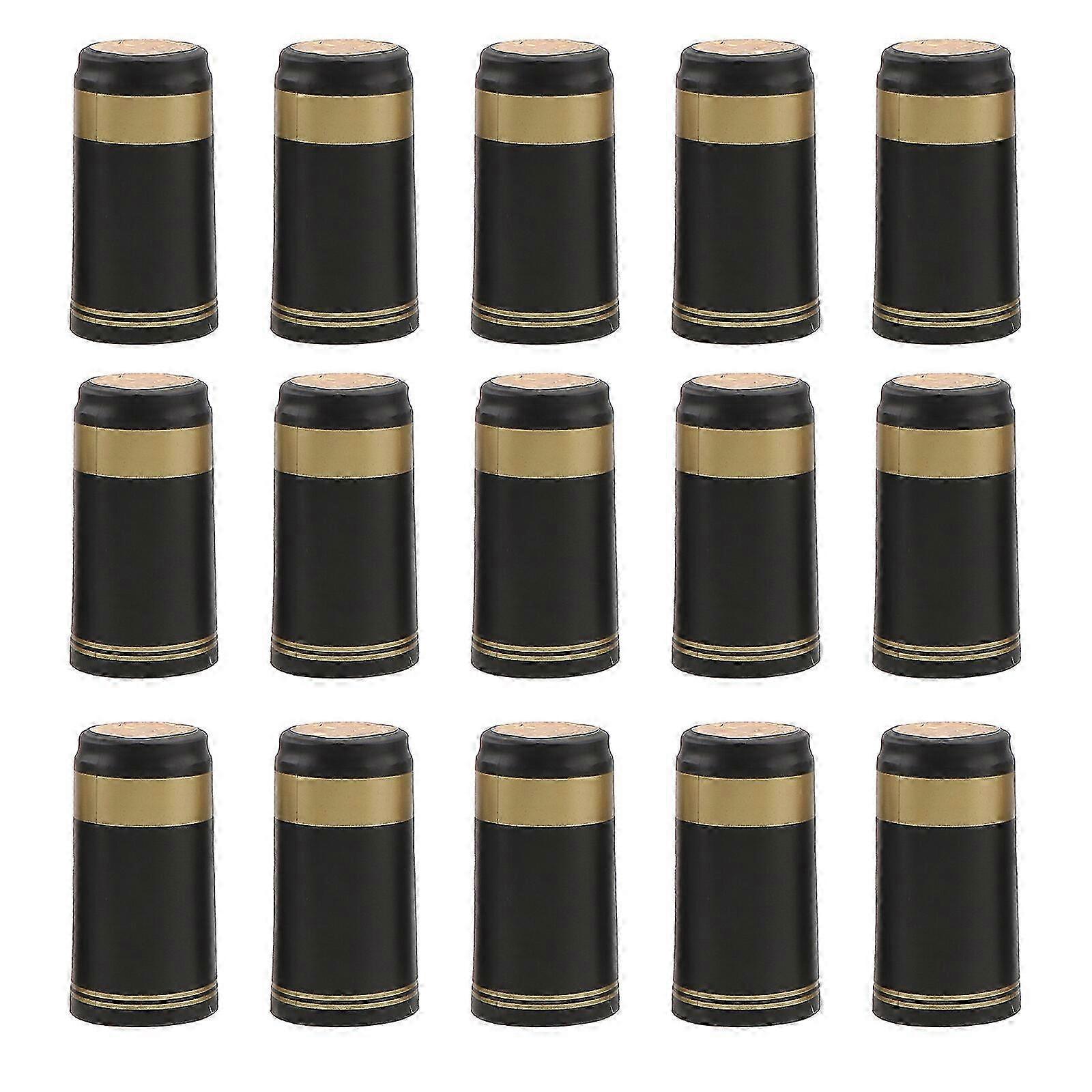 100pcs Heat Shrink Capsules for Wine Bottles, a Wine Heat Shrinkable Film Wrap for Straight Mouth Bottles (Black, Golden Edge)
