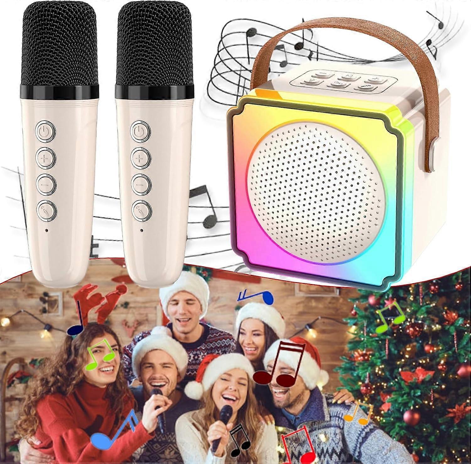 Glistenwing Mini Karaoke Machine with 2 WL Microphones, Five Voice Effects & Colorful LED Lights