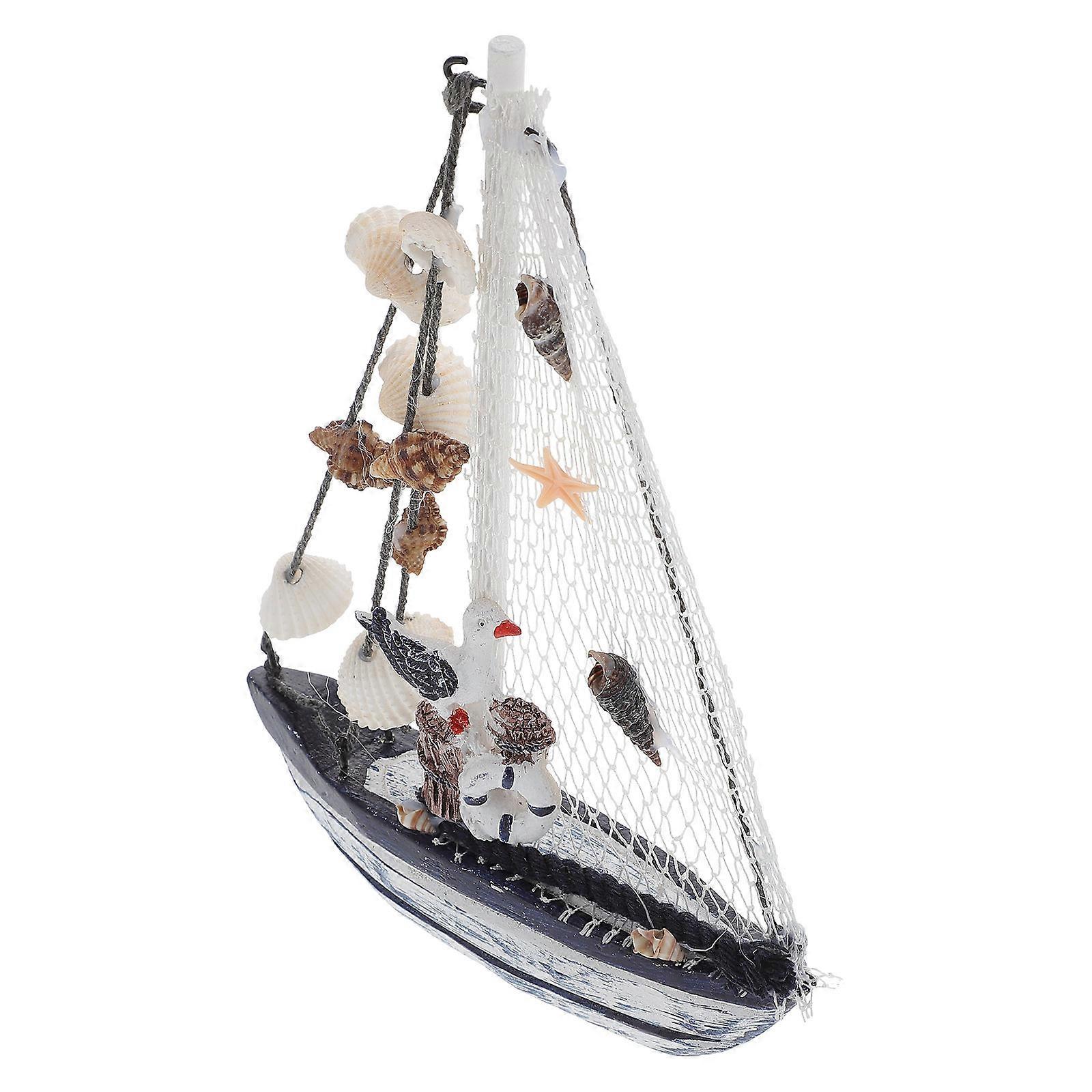 Shell Sailing Boat Adornment Wooden Sailboat Decor for Home and Office 1Pcs