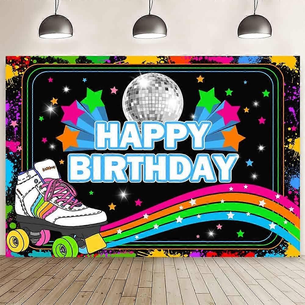 Roller Skates Birthday Backdrop Disco Dance Colorful Rainbow Photography Background Graffiti Splash Banner Birthday Party Decoration for Girl Photoshoot Props Studio Photo Booth Supplies 【Size& Color】:Have 4 size: 5x3FT, 5.9x3.6Ft, 6x4Ft, 7x5Ft, Pictorial cloth is bright in color. 【Material】: Polyester.It can be folded and easy to carry.Can be Ironed and Washed with bleach-free water. 【Wide Application】:This Photography backdrop is suitable as party supplies, like birthday party, baby shower, wedding, holiday, graduation, baptism,retirement and so on.Or you can use it as home decoration, such as wallpaper, curtain, tapestry, tablecloth,etc.