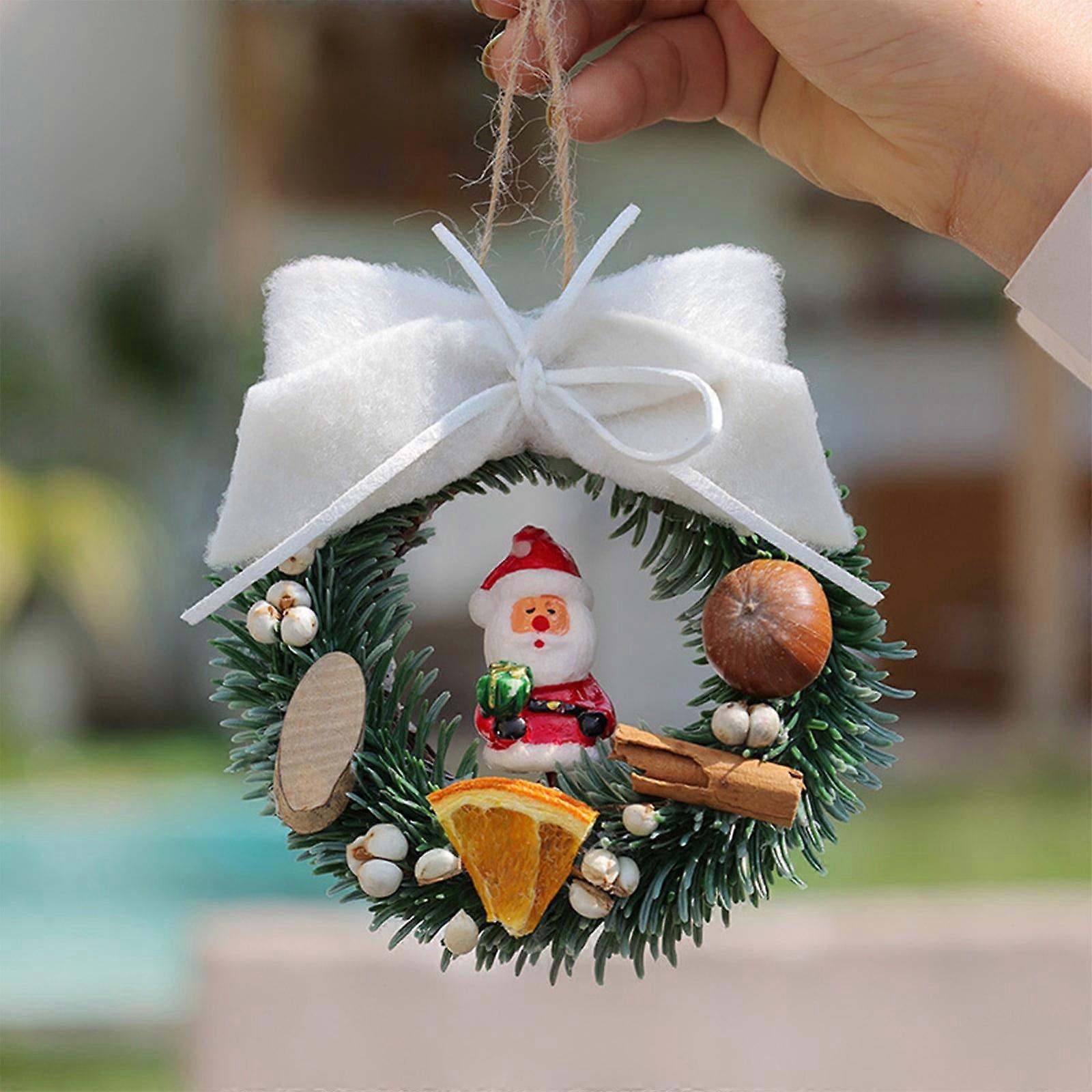 Christmas wreaths 4.72 inches in diameter for front door or car with bows very simulated Norbert branches and leaves Feature: Quantity: 1Pcs Colour:Multicolor Material:Plastic Product size:12x12x7cm/4.72x4.72x2.76in Package size:13x13x8cm/5.12x5.12x3.15in Net weight:46g/0.10lb Gross weight:50g/0.11lb Descrition: CHRISTMAS WREATH: You will receive a very beautiful wreath, very simulated Norbert branches and leaves decorated with a bow and Santa Claus and lemon slices, the wreaths are very delicate and festive! EASY TO HANG: These artificial Christmas wreaths are made with string above to help hang in many places; with bright Christmas colors, it can be beautiful to hang everywhere. SIZE AND CAN BE USED FOR LONG TERM: It measures. 4.7 inches in diameter and the thickness is 2.8 inches, a good size to be a good decoration, and easy to store and reuse so you can reuse it every Christmas VERY GOOD MATERIAL: This lighted Christmas wreath door is mainly made of plastic, and its branches and leaves are more like real trees with high simulation effect. Looks very close to the real trees, while they are safe and odorless, providing a pleasant and long lasting using experience. WIDE APPLICATION: Christmas wreath decorations can be applied indoor or outdoor Christmas wreaths, Christmas decorative wreaths are great for decorating home, stores, offices and classroom decorations; stellar Christmas decorations for doors on your mantle, inside your car, on the front door, on the living room wall or as a dining room table decorations, light up Christmas wreaths outside! Package Content: 1x Christmas wreaths 12cm diameter of Christmas simulation rattan bow wreath decoration C This is a very useful Christmas decoration, great value for money and it will make your Christmas a great one! High-Quality Craftsmanship: These Christmas decorations are made from durable and lightweight materials, ensuring that they will last for years to come. Each ornament is carefully crafted with attention to detail, making them a beautiful addition to any Christmas. CLASSIC & EXQUISITE CHRISTMAS ORNAMENTS - These ornaments feature a variety of classic and popular Christmas elements. They will be perfect for decorating your home and become part of your holiday tradition. Perfect Holiday Gifts: This pack of ornaments makes a great gift for friends, family, or coworkers. Whether you give them as a set or individually, these ornaments are sure to bring a smile to anyone's face during the holiday season.