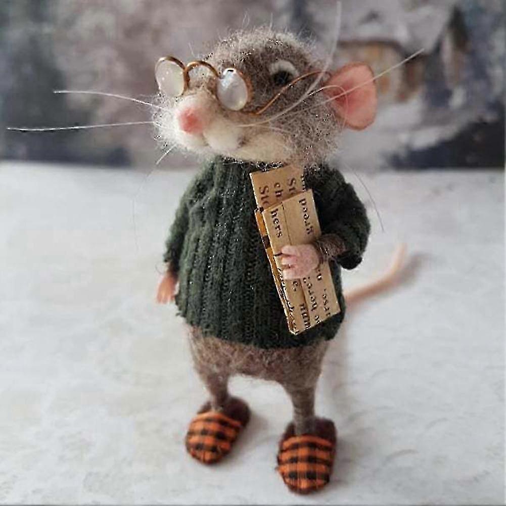 Handmade Felt Mouse Christmas Ornament, Cute Wool Figurine for Holiday Decor, Needle Felted Mice Doll for New Year Festive Decoration-Yvan