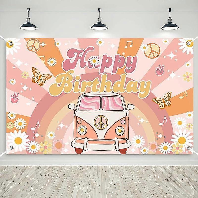 Groovy Birthday Banner, Retro Hippie Boho Daisy Party Decor for Kids, Rainbow Happy Birthday Background Indoor Outdoor, Compatible with Groovy