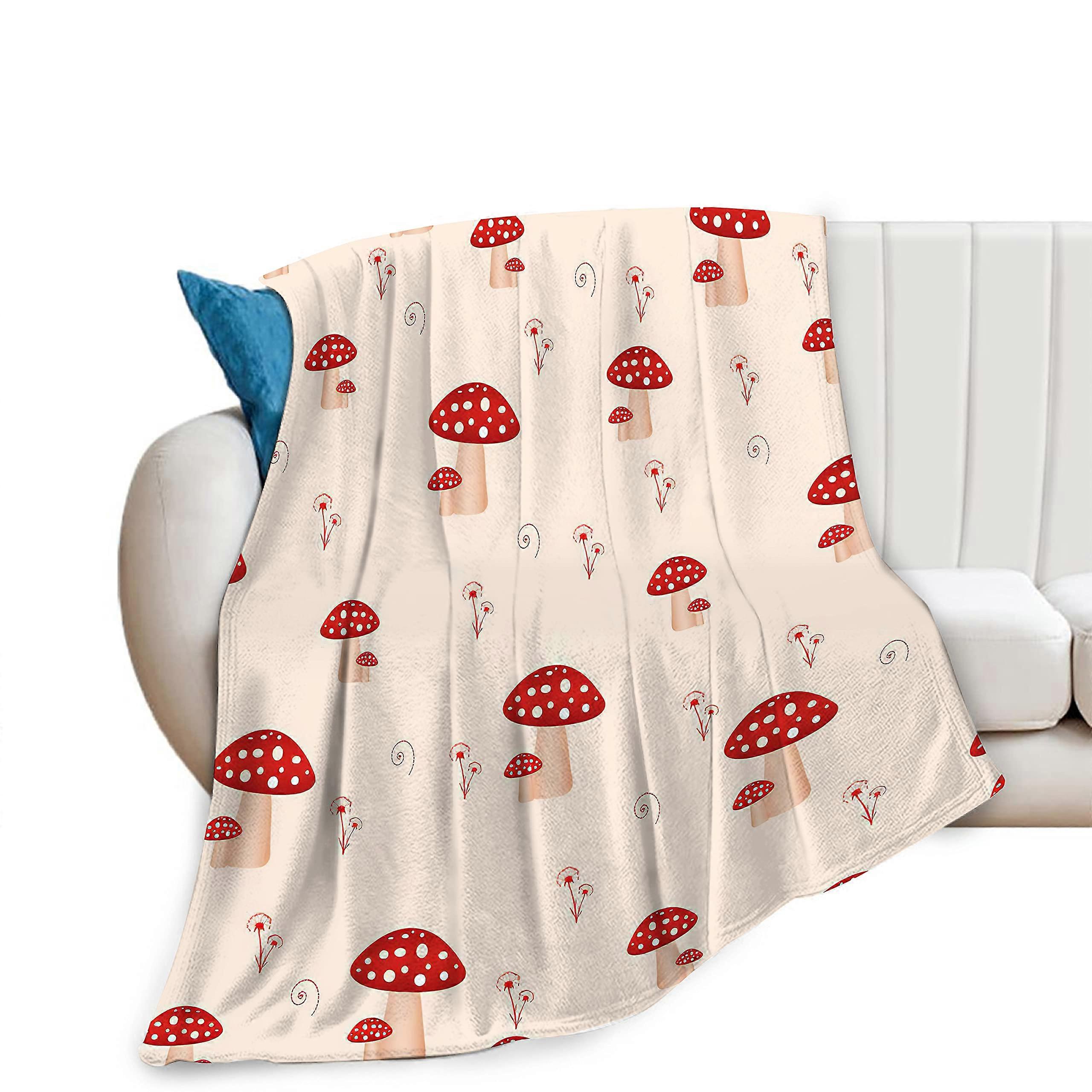 Mushroom Blanket Soft Red Fleece Throw 60x50 Inches for Adults and Kids Plush Lightweight Flannel Decor