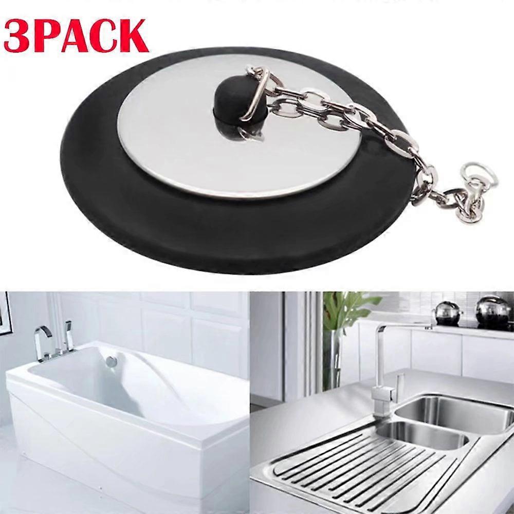 Bathroom Sewer Water Stoppers Home Rubber Sink Water Plugs with Chain-style A-3Pack