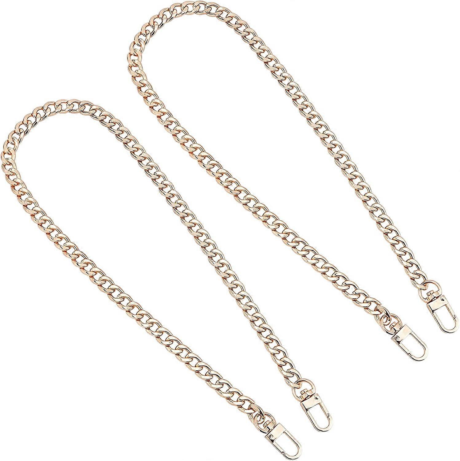 2 Strands 23 Inch Iron Bag Flat Chain Strap with Swivel Clasps Handbag Chain Straps Metal Bag Strap Replacement Purse Clutches Handles Golden