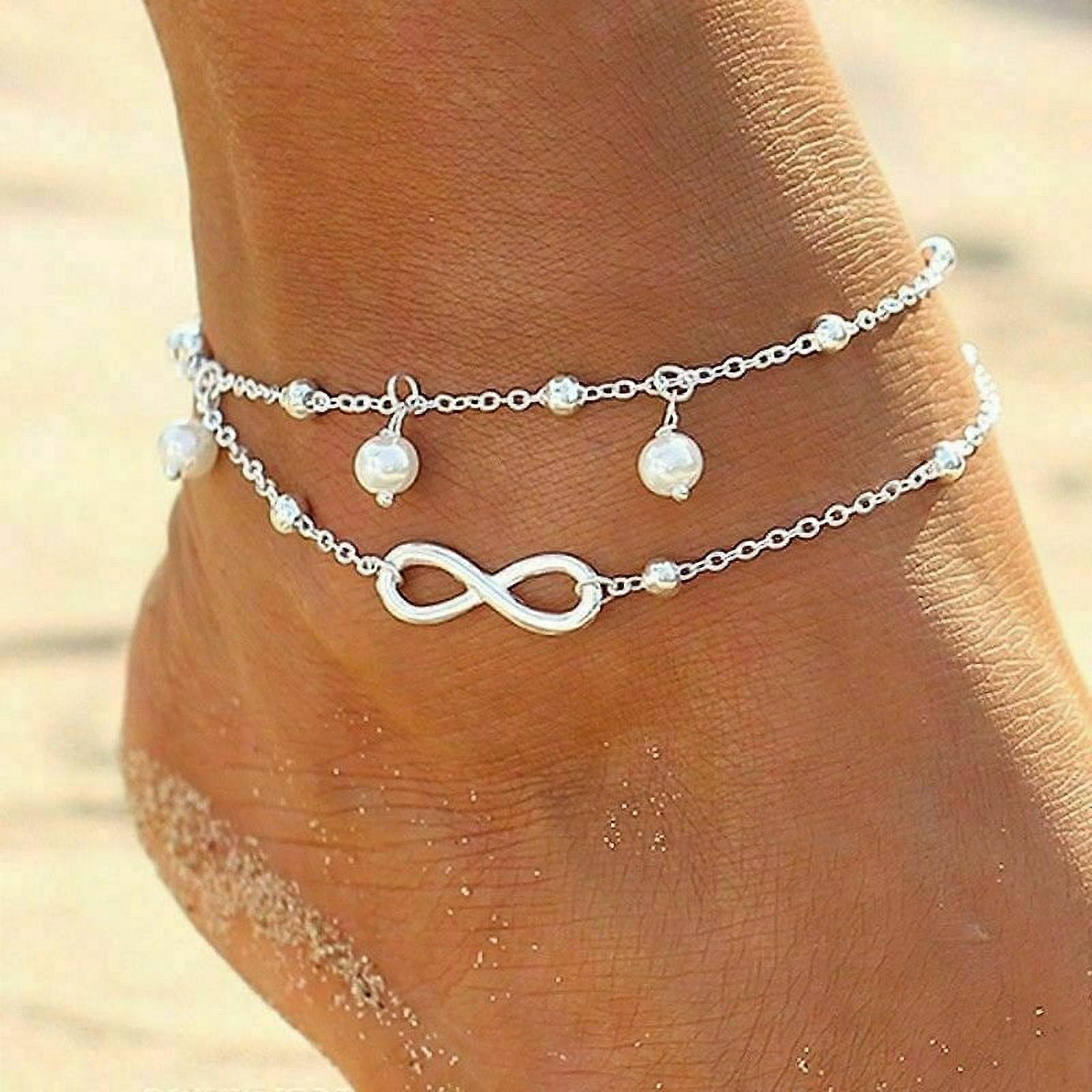 Women's Stainless Steel Double Layer Charm Love Ring Bracelet Chain Anklet Gift