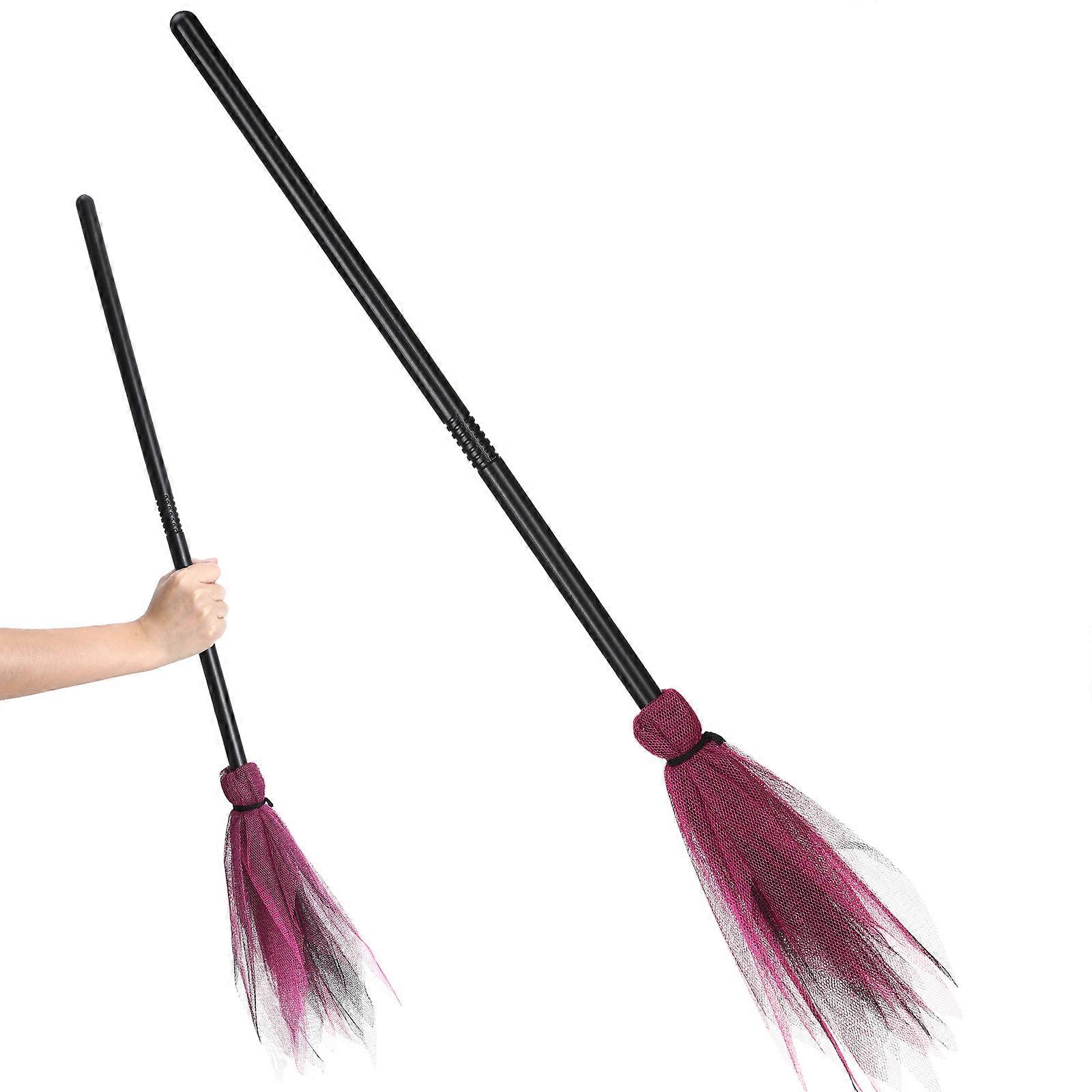 Witch Broom Rosy Mesh Halloween Supplies for Party Offering Vivid Experience