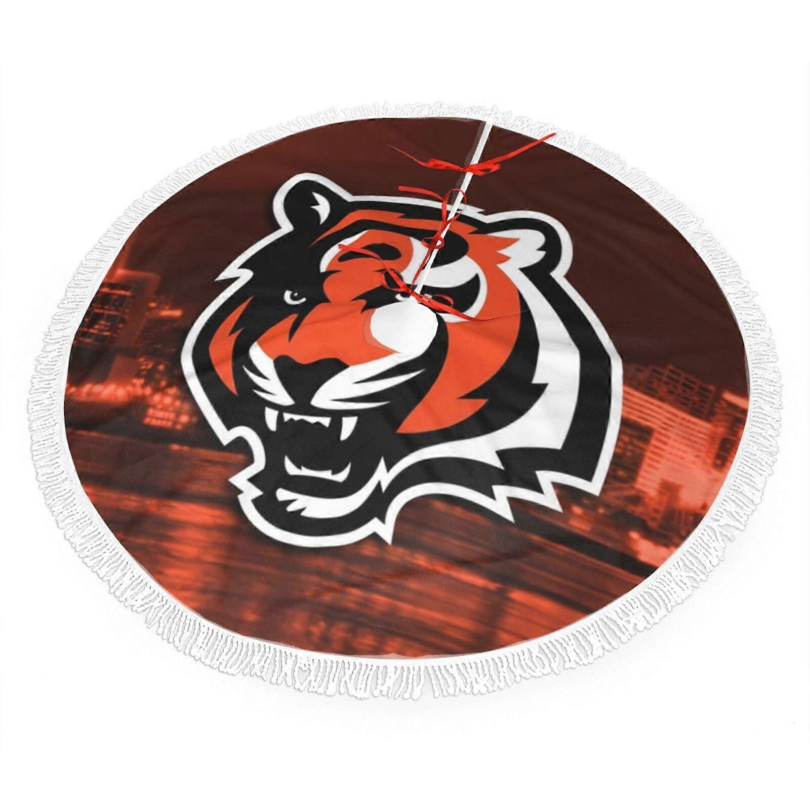 Bengals Christmas Fringe Edge Plush Tree Skirt, 30" 36" 48", Football Team Color, Bright & Easy to Install, Great Gift for Fans