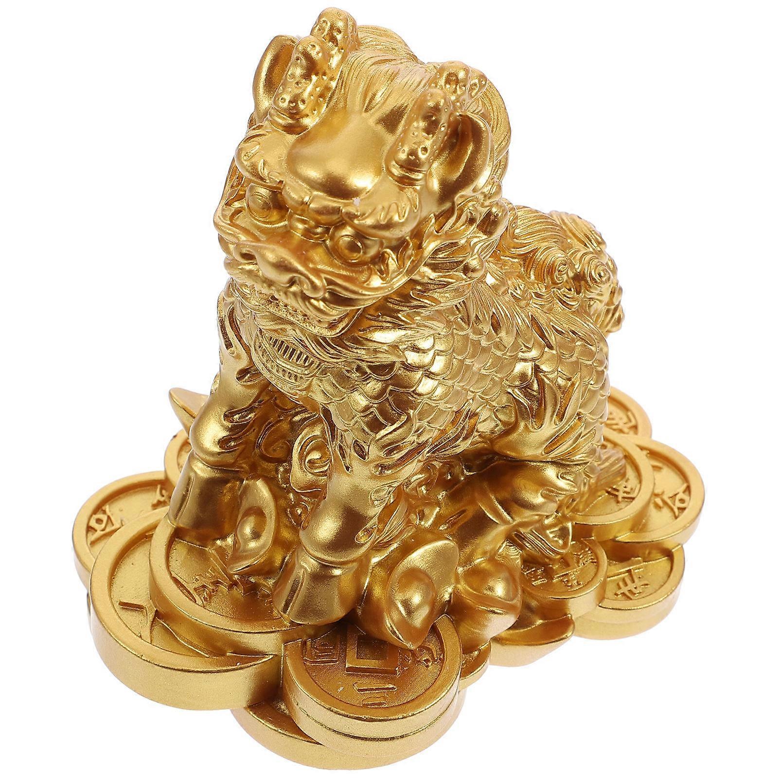 Resin Feng Shui Kylin Ornament for Decoration 2Pcs Golden Kylin Figurine