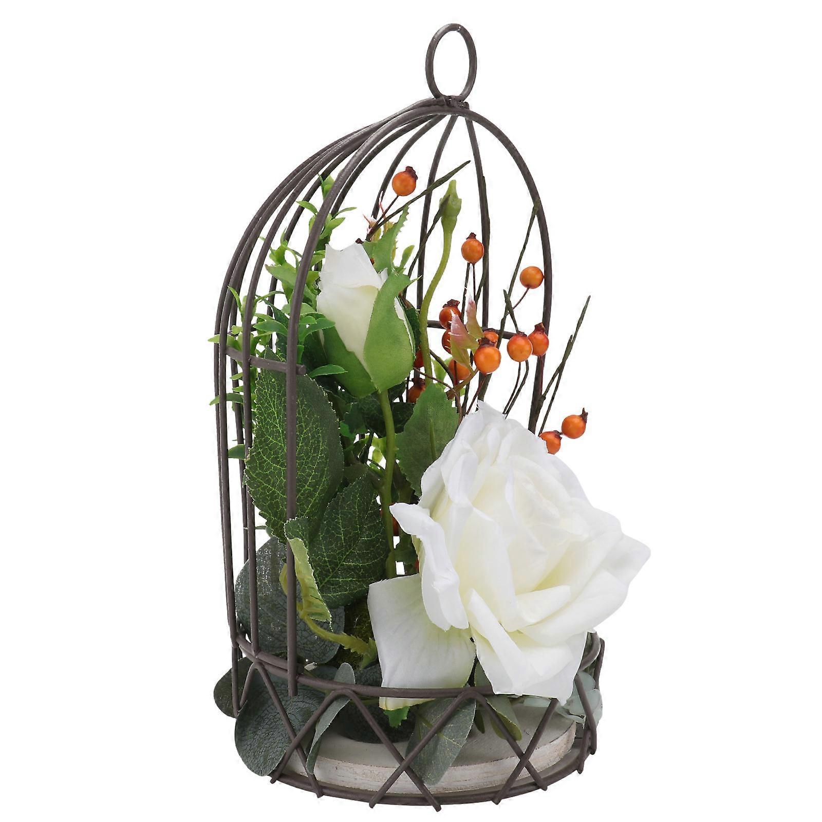 Hanging Bird Cage Adornment White Rose Flower Rack Table Decoration 24x12x12cm Rustic Style Home Decor 1Pack