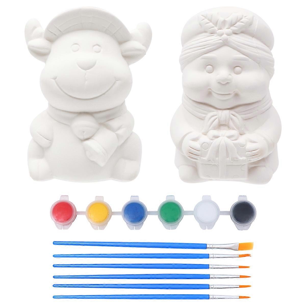 Christmas Ornament Paint Statue Kit for DIY 4Pcs Piggy Bank Ceramic