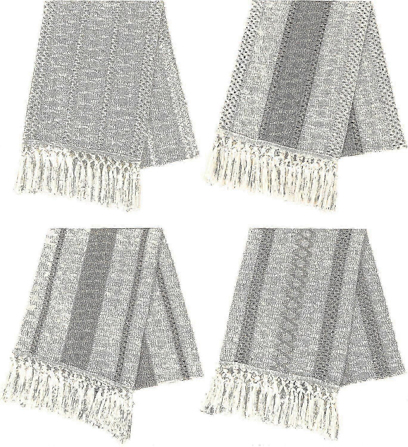 2025 Latest Model 4 Pieces Bohemian Table Runner with Tassels, Country Style Cream Beige and Khaki
