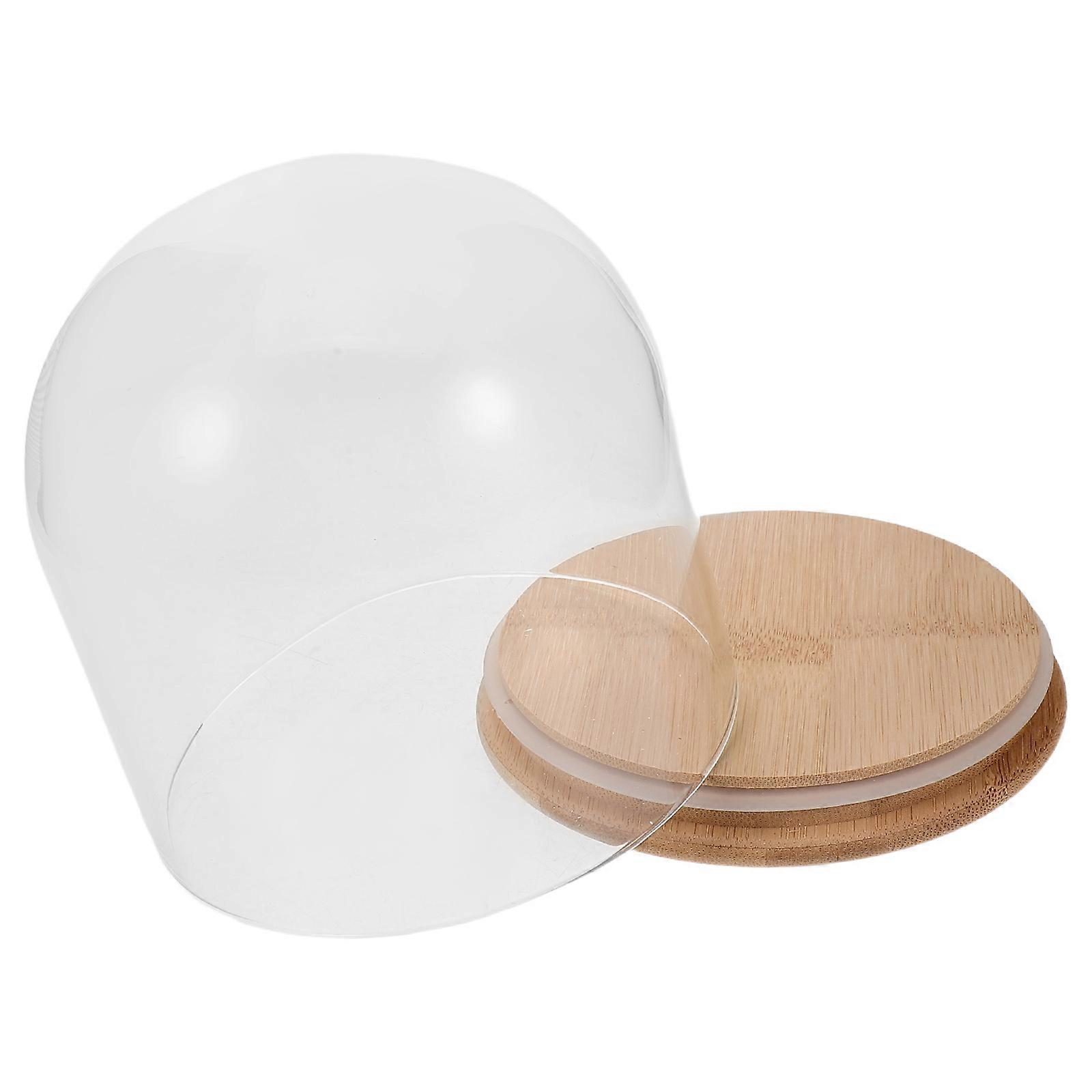 Clear Glass Dome with Bamboo Stand for Flower Decor 2Pcs Cloche