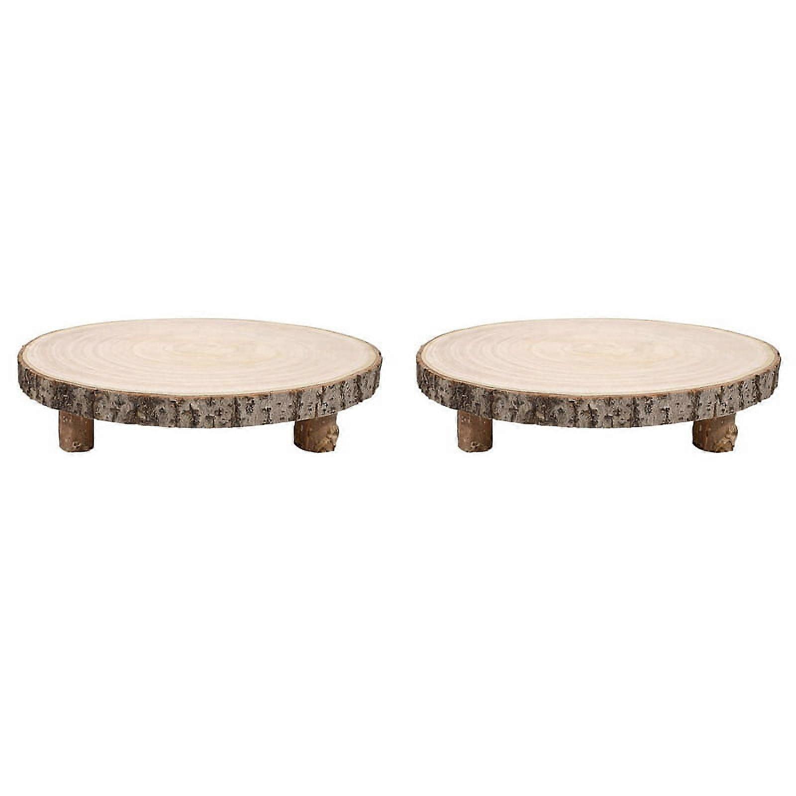 2pcs 11 Inch Wood Cake Stand, Round Wooden Cupcake Pedestal, Paulownia Wood Slice with Legs, Rustic Cake Holder Wooden