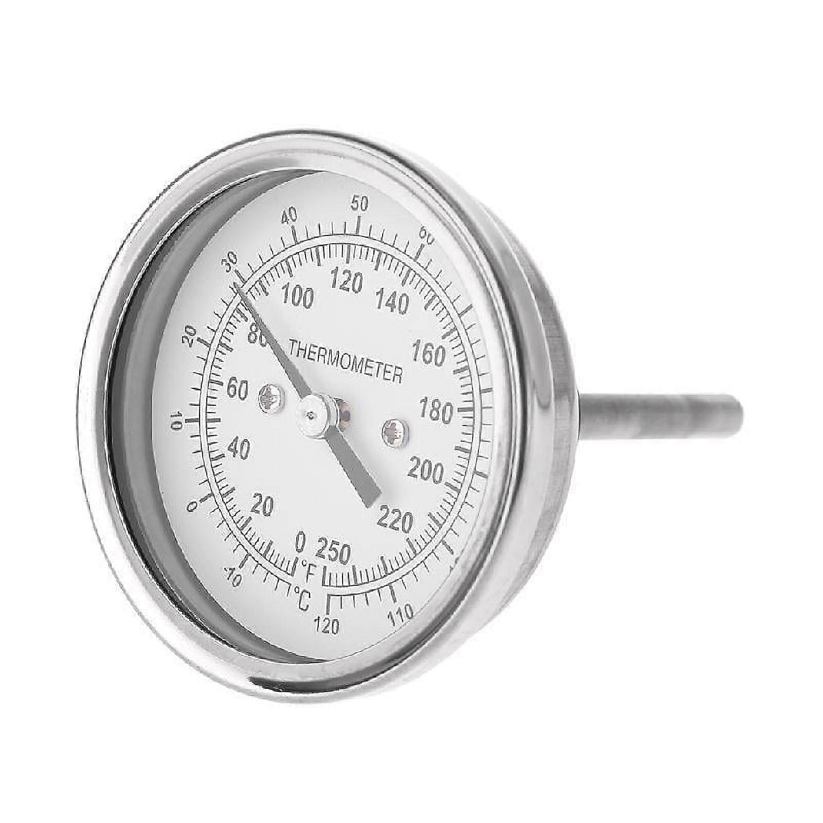 100% brand new and high quality Features: -Dual dial plate,for Celsius and Fahrenheit,for your different needs. -Metal materials,high quality and high intensity,durable and heavy-duty. -Great for home brewing and distilling. -Tuning and Zeroing adjustment screw on back, 1/2" NPT threaded back. -10 - 100 Celsius and 0 - 220 Fahrenheit. Accuracy of +/- 1%. -Multi-functional,as water thermometer,for various materials of liquid temperature measurement. thermometer only,other accessories demo in the picture are not included! Specification: Main Material: Metal Type: Dual Dial Color: As pictures shown Heat Response Time: