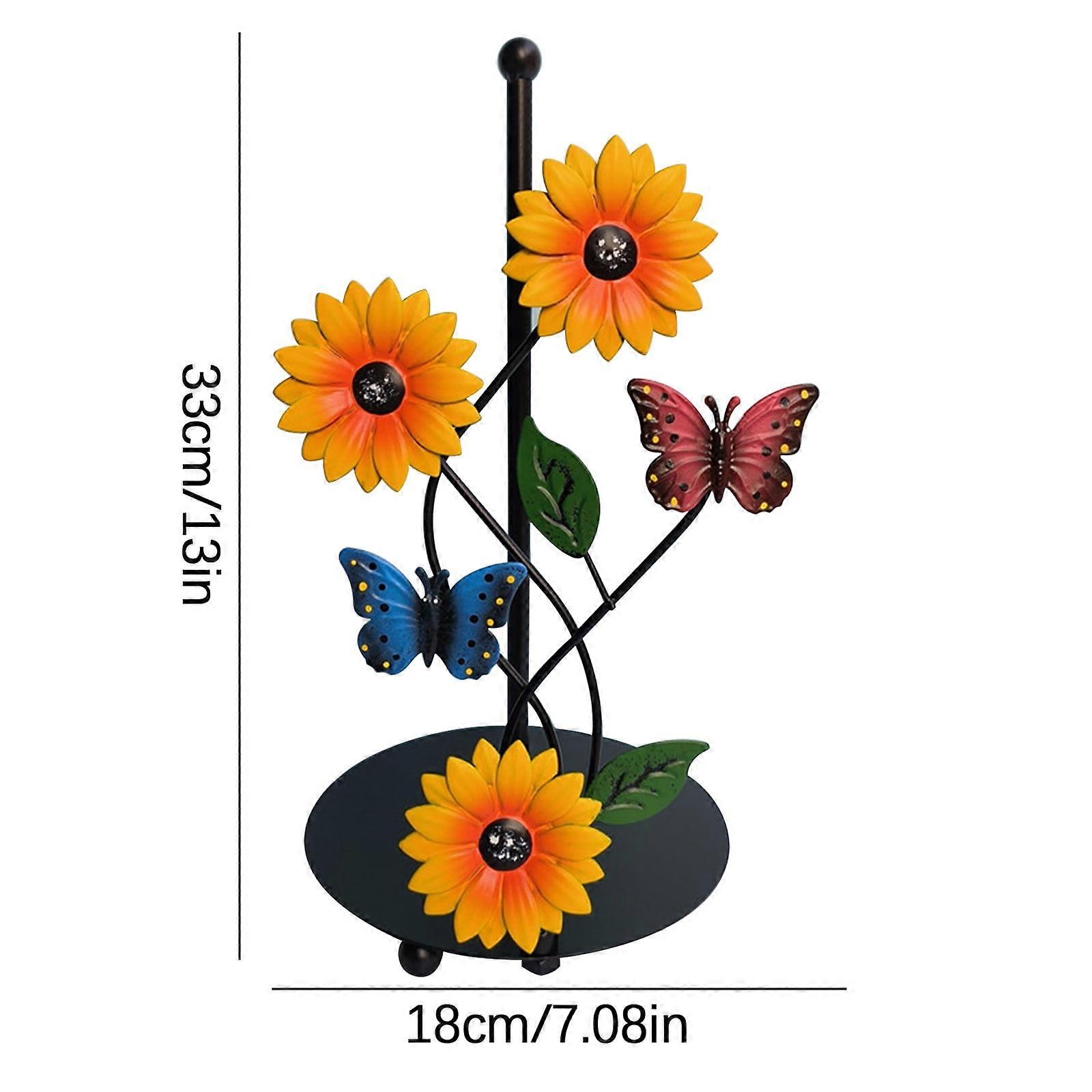 MERILER Sunflower & Butterfly Hand-painted Wrought Iron Paper Towel Holder, Compatible with Kitchen or Living Room Decor